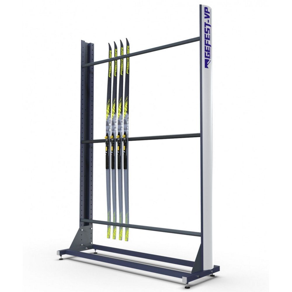 Стеллажи для беговых лыж обладают сборно-разборной конструкцией. Благодаря регулировке горизонтальных держателей лыж с шагом в 5 см., возможна установка лыж различной длины: взрослые (170-210 см), подростковые (145-180 см) и детские (100-170 см).