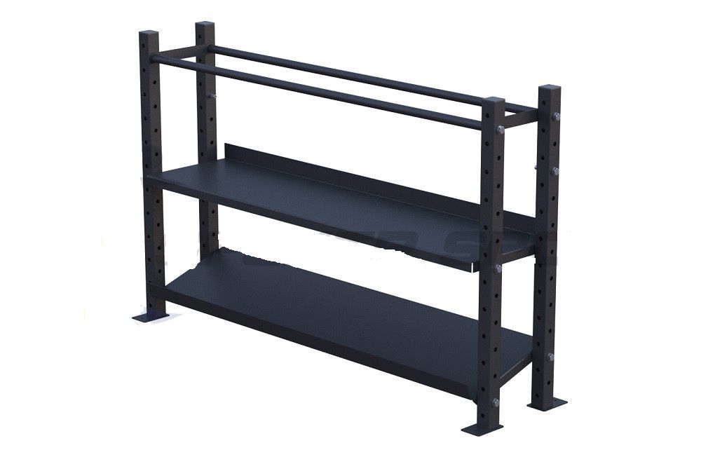 Конструкция - модульная, т.е. стеллаж можно состыковывать с другими моделями модульных стеллажей, образовывая функциональное пространство для хранения силового инвентаря