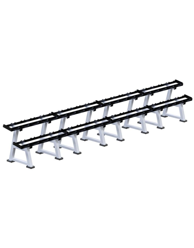 - Двухъярусная стойка для хранения до 20 пар различных гантелей;