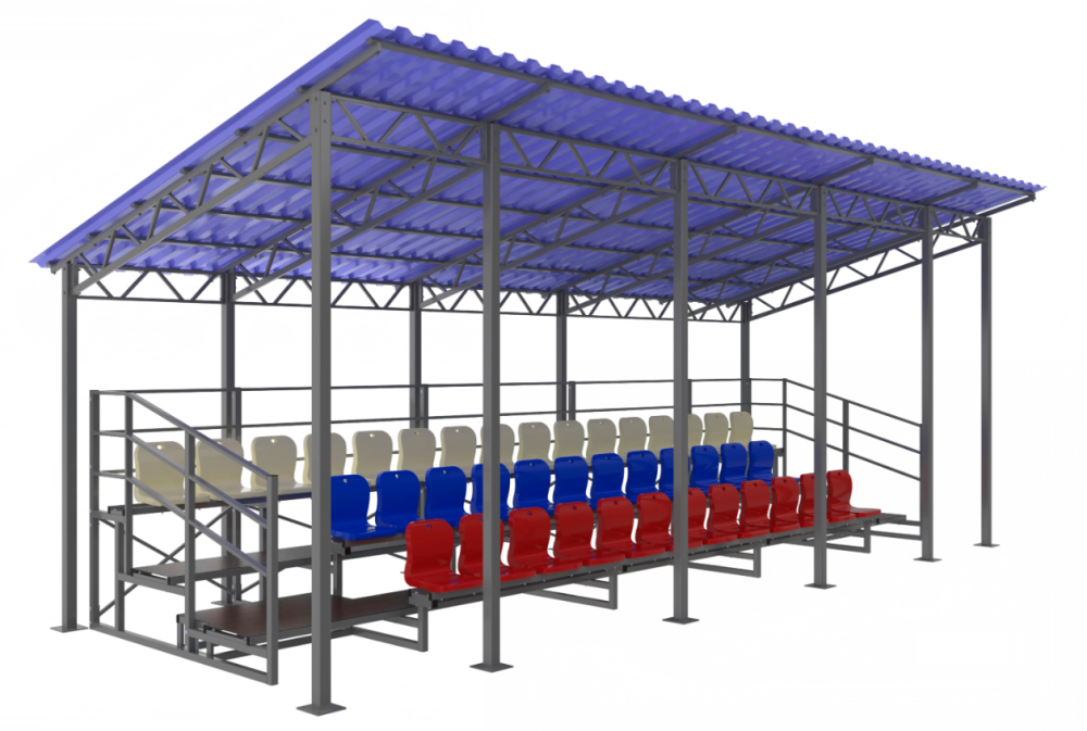 Трибуна сборно-разборная 3-х рядная на 40 мест (с навесом из профлиста)