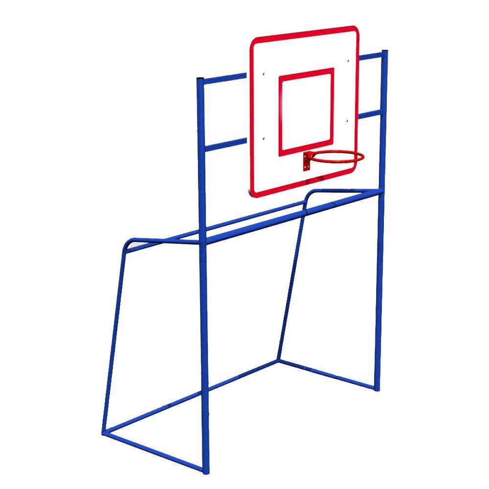 - Ворота мини-футбольные с баскетбольным щитом 700х700 мм из ламинированной фанеры на металлической раме с кольцом №5.