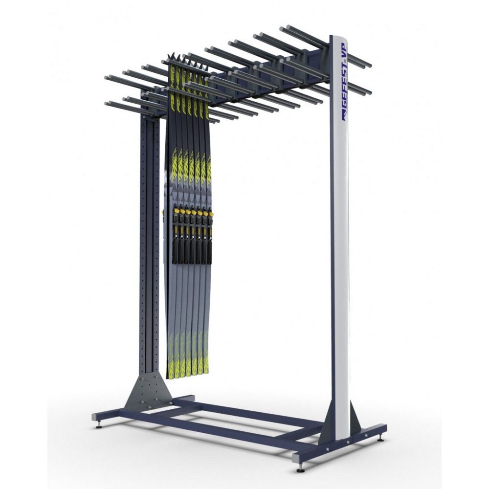 Преимуществом данных стеллажей является возможность размещения и хранения лыж различной длины: взрослые, подростковые и детские от 100 до 210 см., Стеллажи данной серии обладают самой большой вместимостью лыж на одном стеллаже.