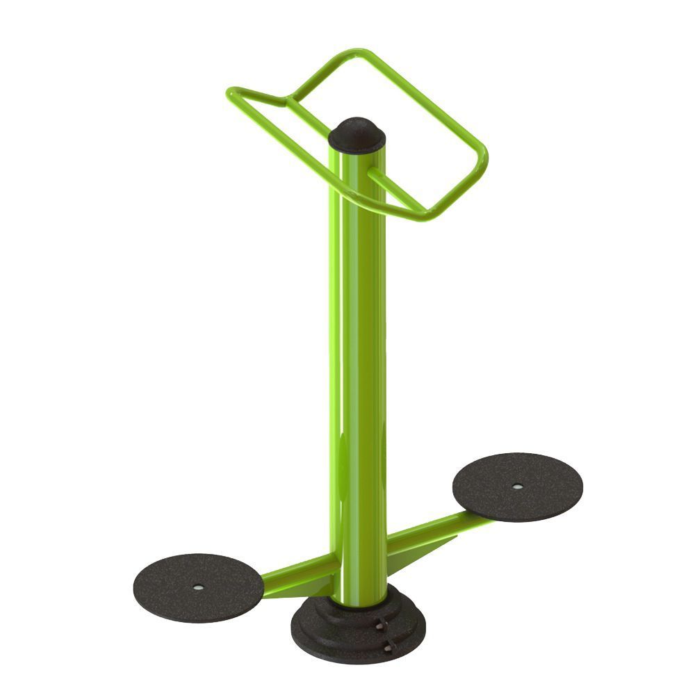 Использование: Пользователь стоя на диске, держась за рукоятки, выполняет поворотные движения туловища влево и вправо, при этом торс остается неподвижным.