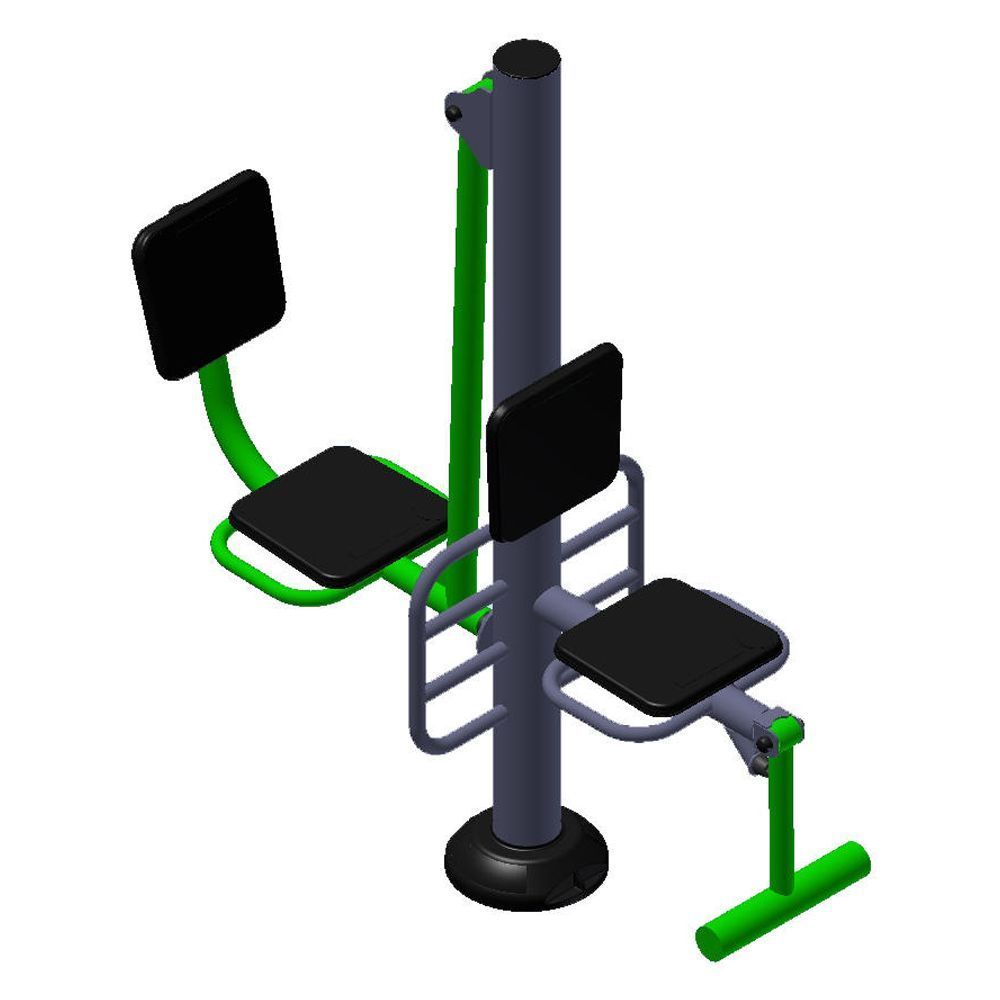 Монтаж: Уличный тренажер может быть установлен как в грунт, так и на подготовленное бетонное основание при помощи анкерного крепления. Для установки тренажера в грунт требуется один закладной элемент или один каркас для заливки бетонной смеси (в комплект поставки не входит).
