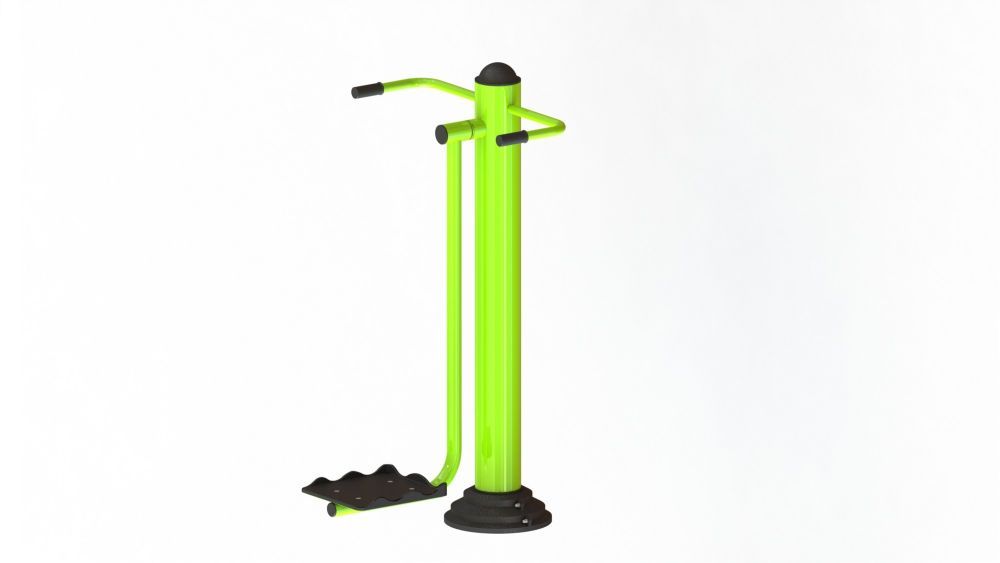 Использование: Встаньте на платформу, лицом к вертикальной стойке, руками охватить рукояти тренажёра, раскачивайте ноги вправо-влево, в то время как тело удерживается в вертикальном положении силой рук.