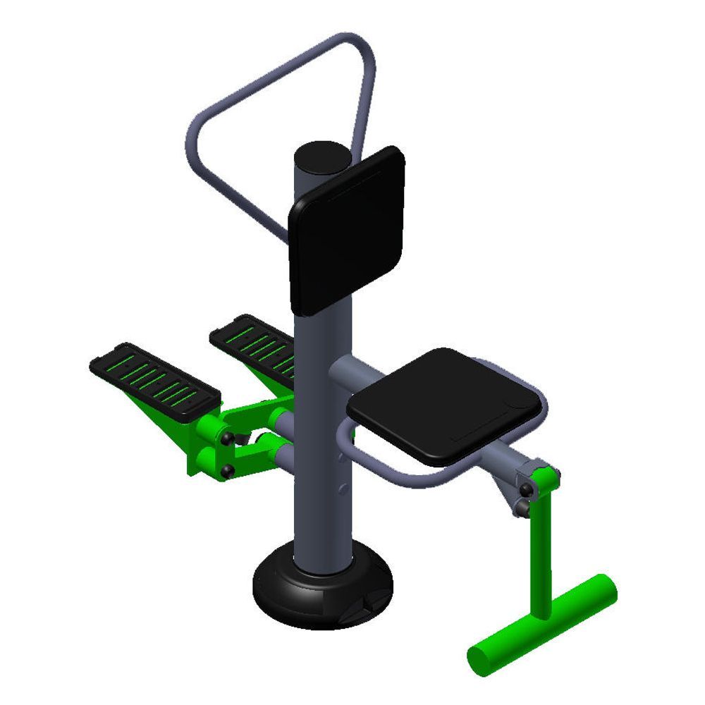 Монтаж: Уличный тренажер может быть установлен как в грунт, так и на подготовленное бетонное основание при помощи анкерного крепления. Для установки тренажера в грунт требуется один закладной элемент или один каркас для заливки бетонной смеси (в комплект поставки не входит).